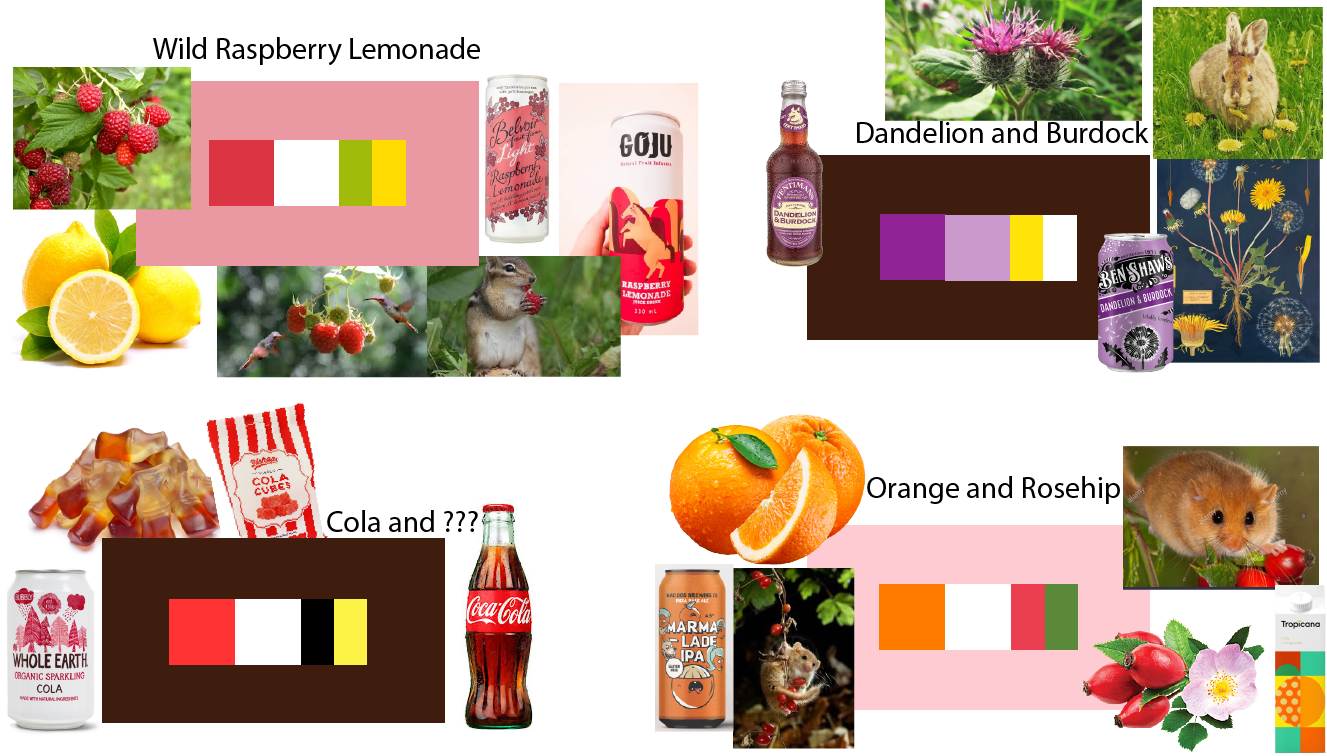 I worked out a colour palette for the flavours we were given and found some images that inspired me alongside an example of drinks package design of similar flavours.